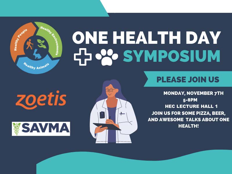 This will be a lecture-based event with speakers from the CVM (Dr. John Tegzes) and Zoetis addressing topics relating to One Health. We will be serving pizza and drinks as well as handing out One Health themed goodie bags!